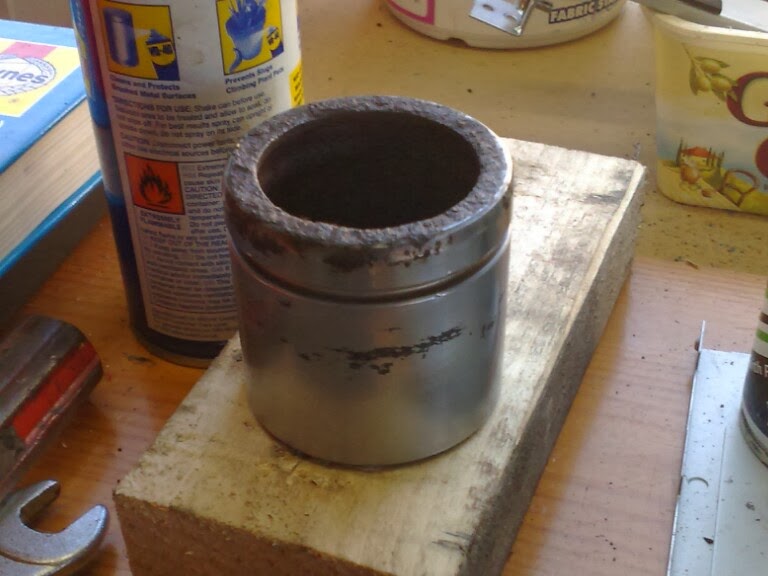 The only problem was the replacement dirt gaiter which no amount of pressing and poking would convince to stay firmly down on the caliper. Investigation showed this to be due to more corrosion which I did my best to clean up.